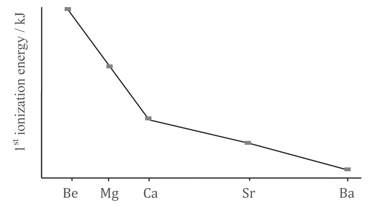 - the outer electron is in a successively higher energy orbital and is further away from the positive pull of the nucleus. Hence more energy is needed to remove it.