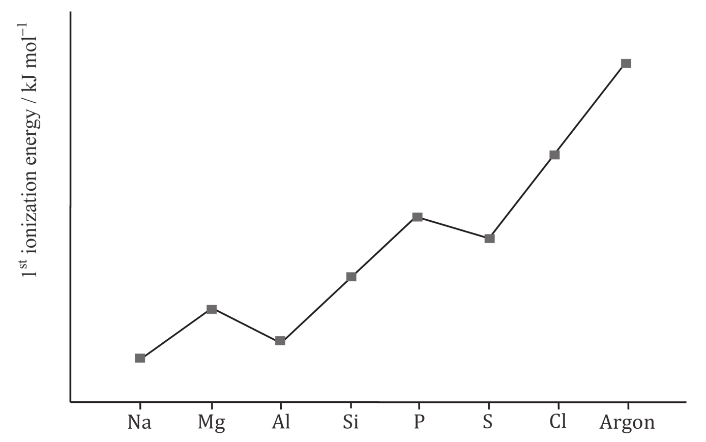 The 1st ionisation energy of an element is the energy needed to remove one electron from each atom in one mole of atoms of the element in the gaseous state to form a mole of gaseous 1+ ions.